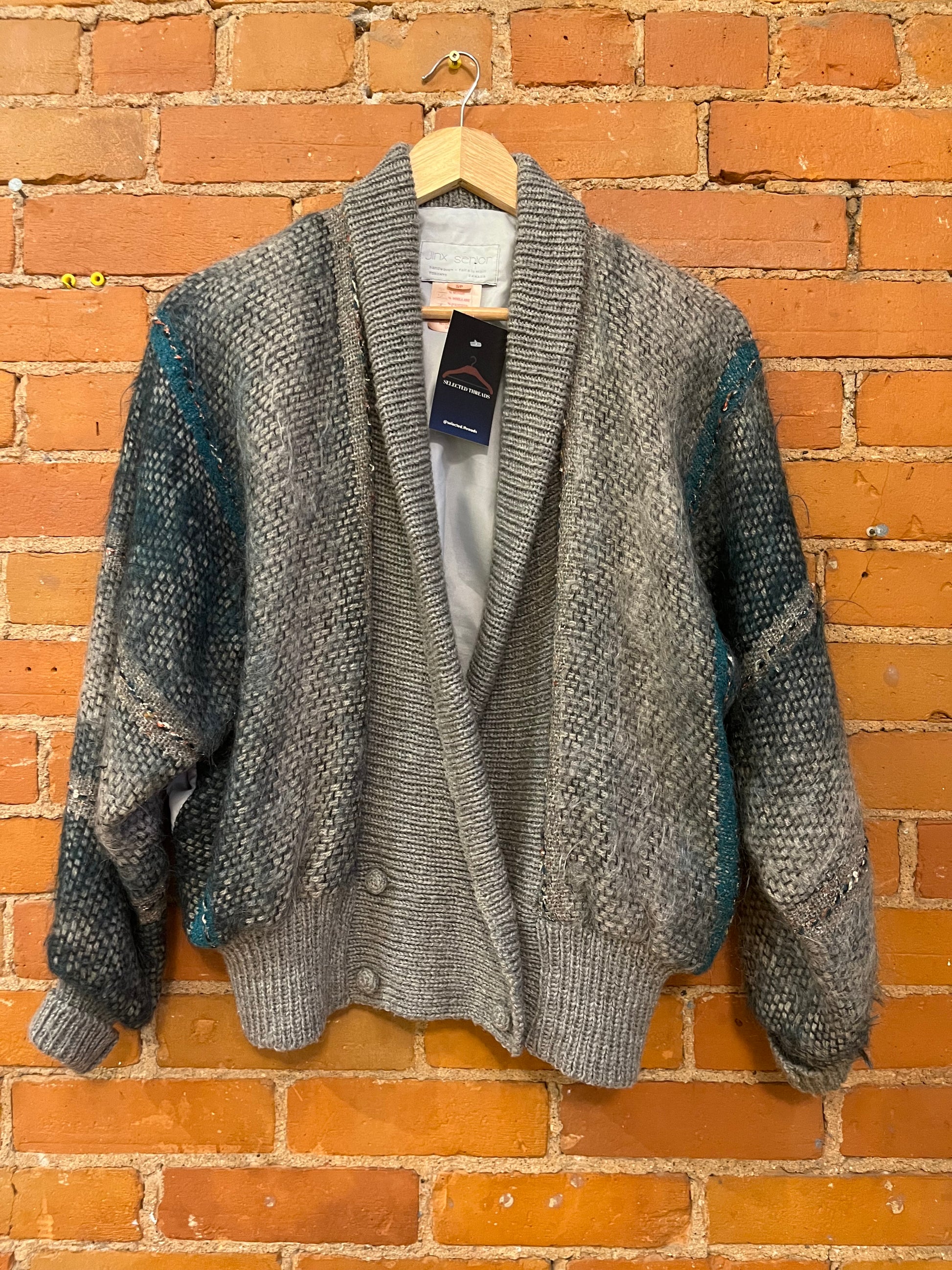 Grey/Teal Mohair Blend Shawlneck Cardigan