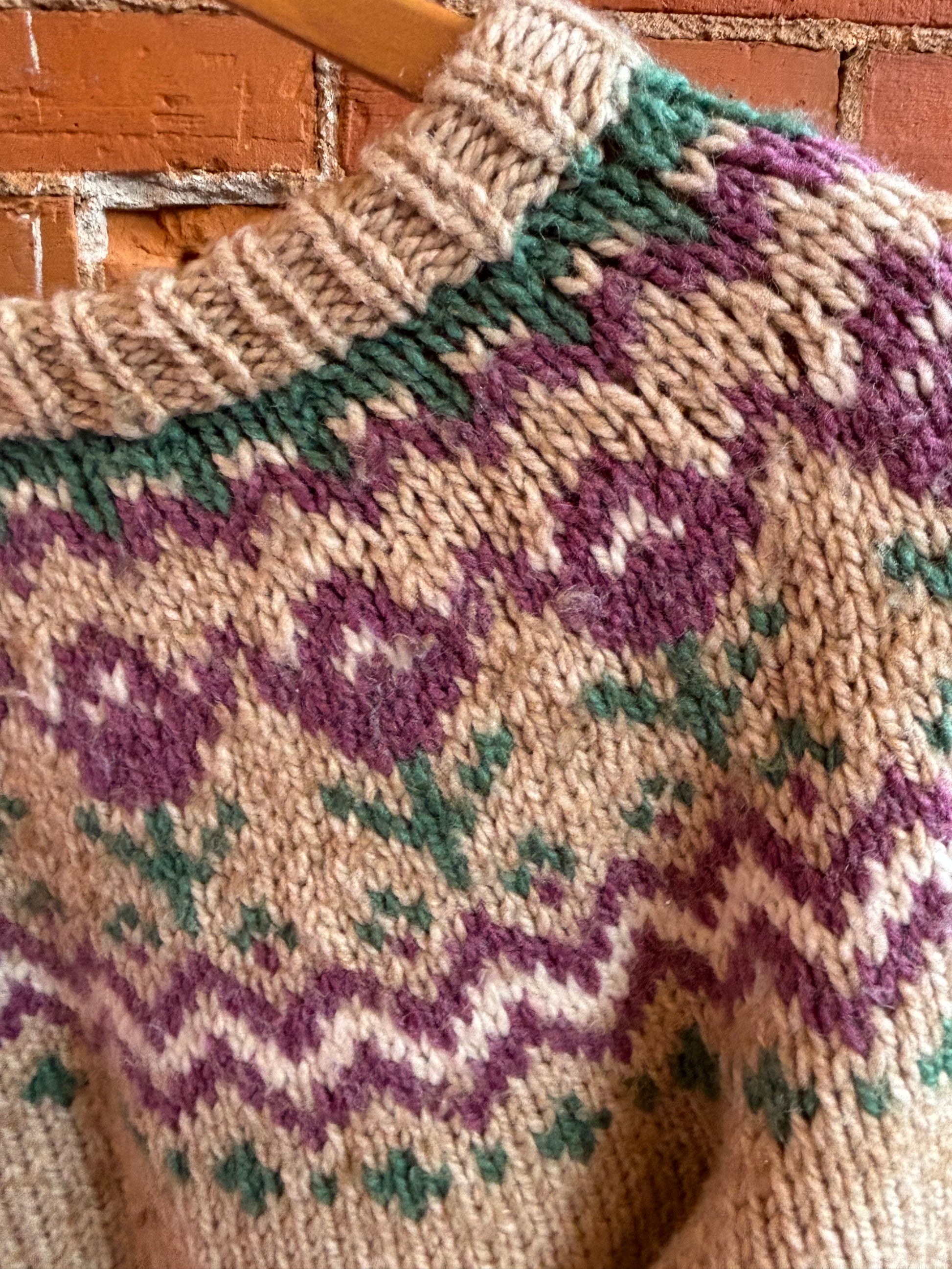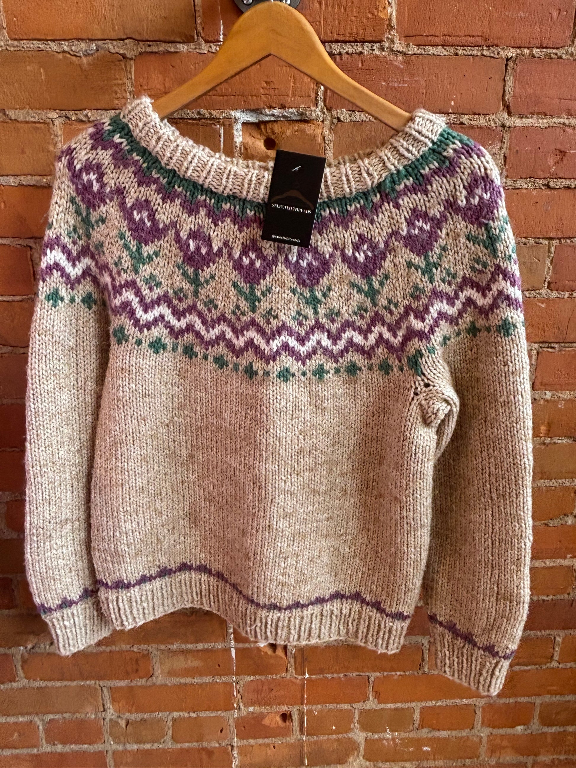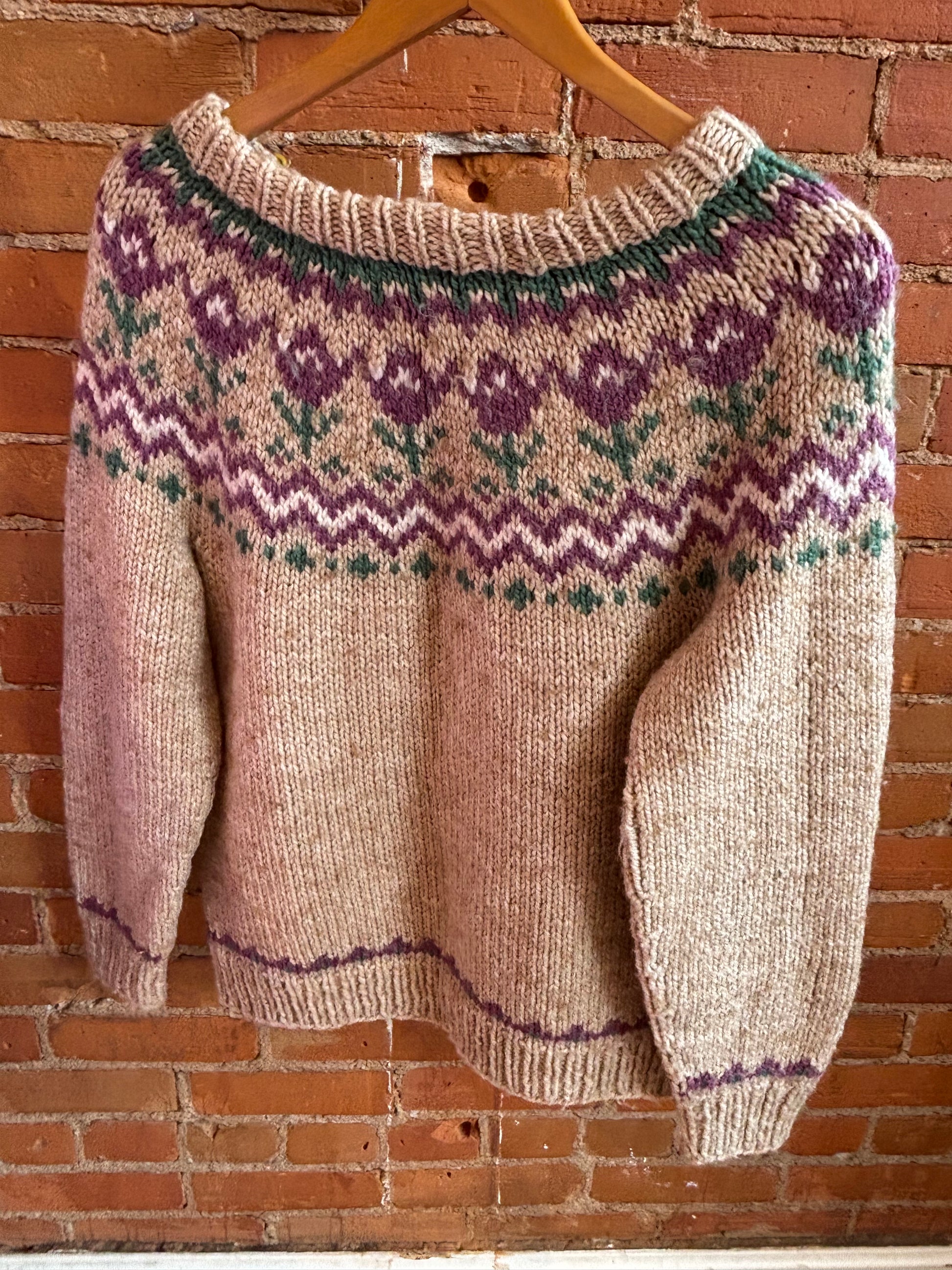 Beautifully knit fair isle sweater featuring tulip pattern.