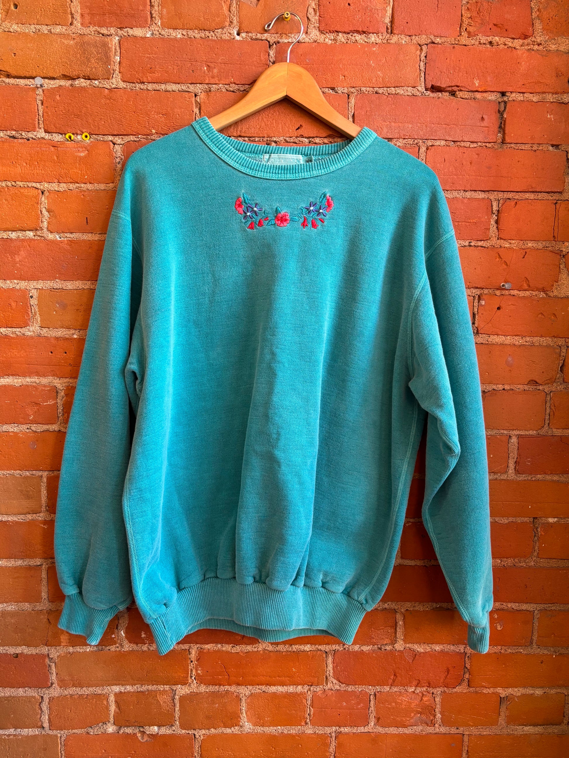 Northern Reflections Teal Floral Embroidered Sweatshirt