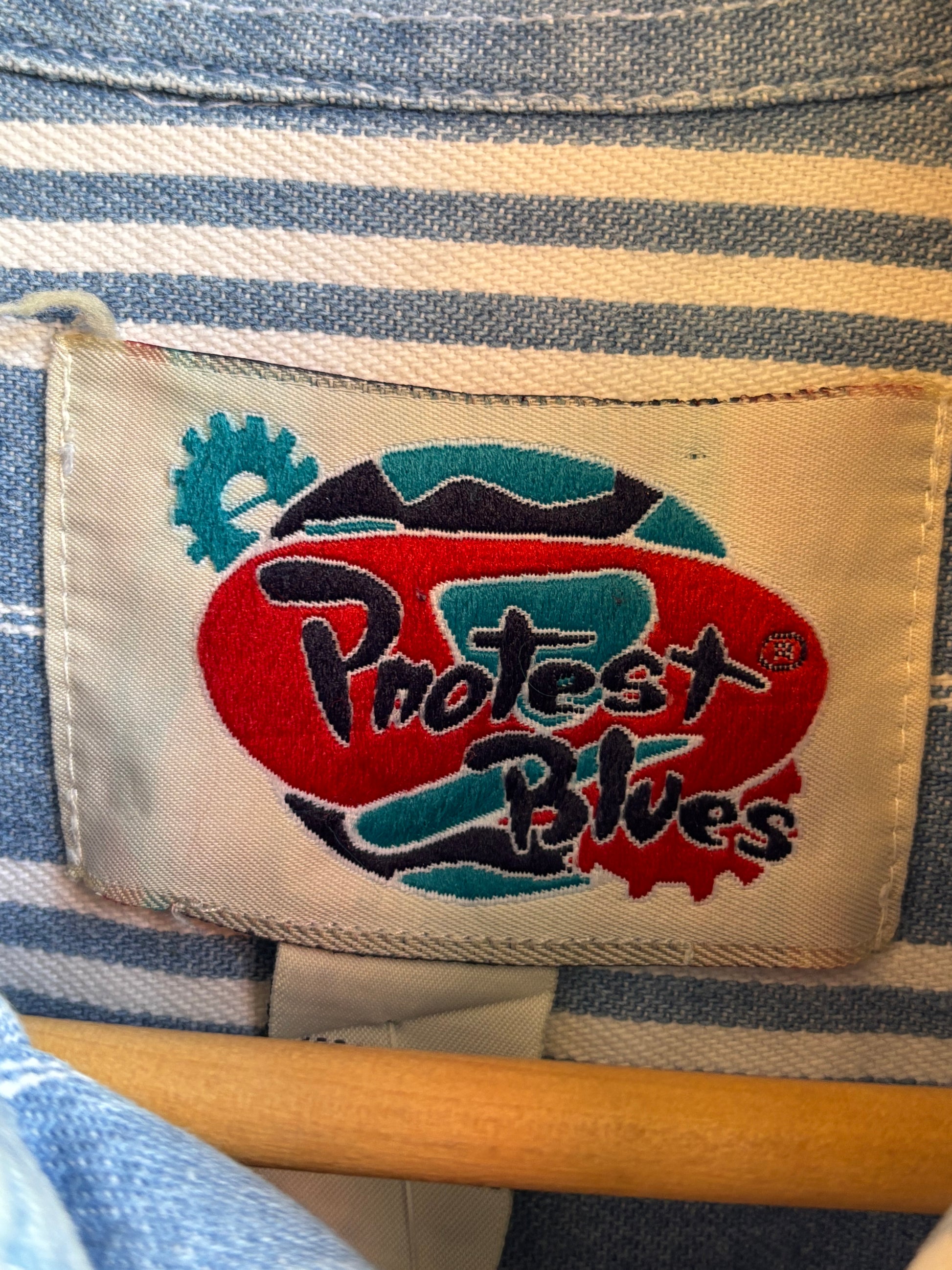 Cool '90s button-down shirt. Subtle "Protest" tab on the chest pocket.